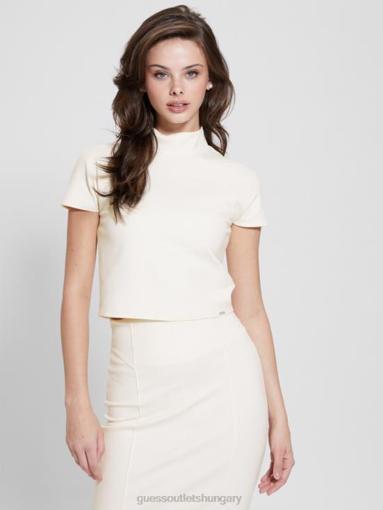 GUESS Cream White 8ZX4F924 Turtleneck Crop Top