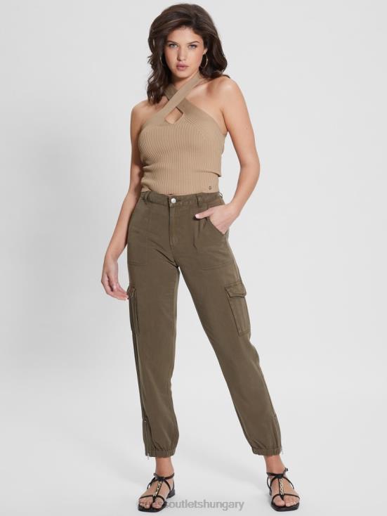 GUESS Khaki Tan 8ZX4F934 Claire Sweater Halter Crop Top