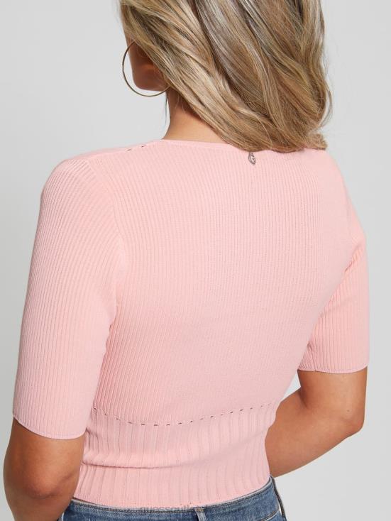 GUESS Peach Creme 8ZX4F974 Soft Bandage V-Neck Top