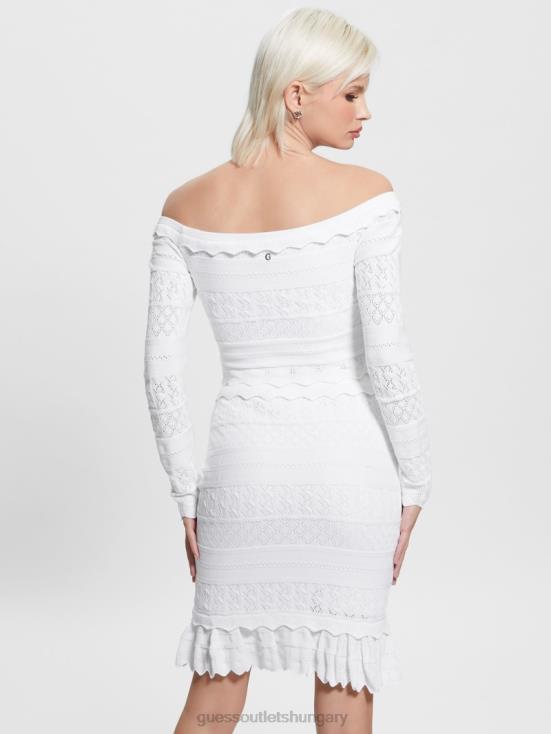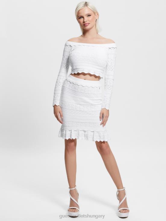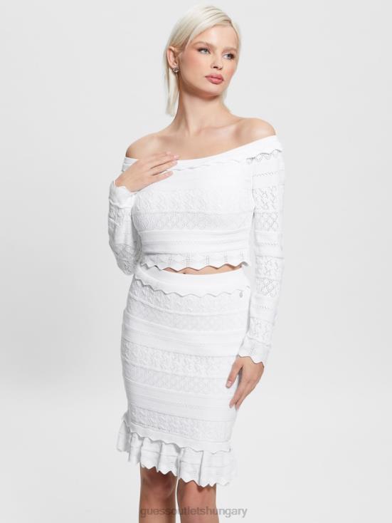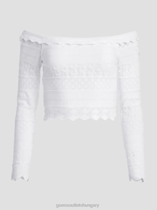 GUESS Pure White 8ZX4F1421 Eco Pointelle Deeta Sweater Top