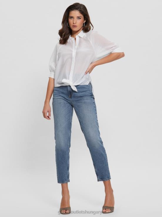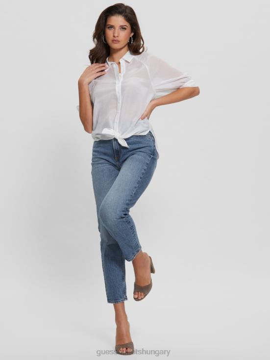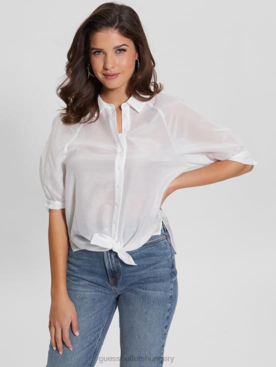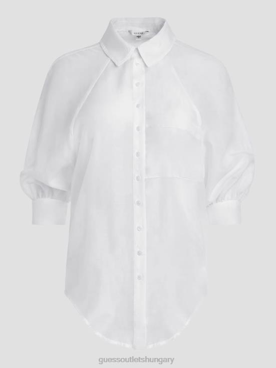 GUESS Pure White 8ZX4F999 Cate Voile Half-Sleeve Top