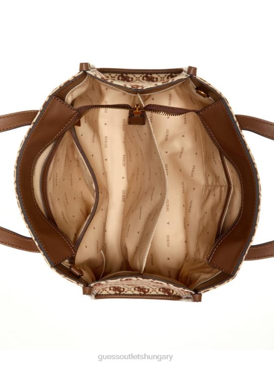 GUESS Brown Multi 8ZX4F2782 Izzy Jacquard Logo Tote